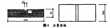 用600mmx500mm×40mm的石墨板作墊板,在墊板中間刻15mm寬,5mm深的溝槽,見圖4。