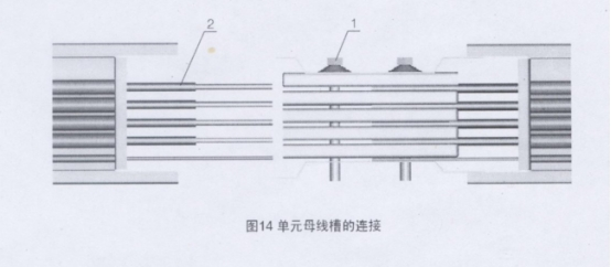 先取出序號1銜接螺栓,然后將序號2母線槽插入,再穿上序號1銜接螺栓,墊入碟形墊圈,用扭力板手將螺母擰緊(扭趴不小于6ONm),然后裝上蓋板(見圖),擰緊接頭螺栓足母線槽銜接的保證。緊固后的接頭查看要求用0.1mm的塞尺不能插進(jìn)。