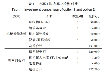 針對(duì)方案1和方案2不同機(jī)柜結(jié)束配電方案,兩者的出資造價(jià)對(duì)比如下,如附表1所示。